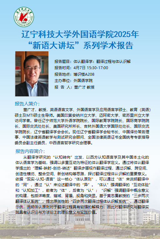 学术预告:体认翻译学:翻译过程与体认识解