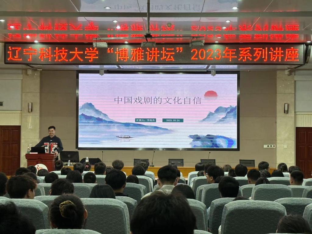 10月24日,易游“博雅讲坛”2023年系列讲座之《中国戏剧的文化自信》在图书馆报告厅开讲。易游(中国)艺术学院教师李俊杰为学校220名学生作专题讲座。