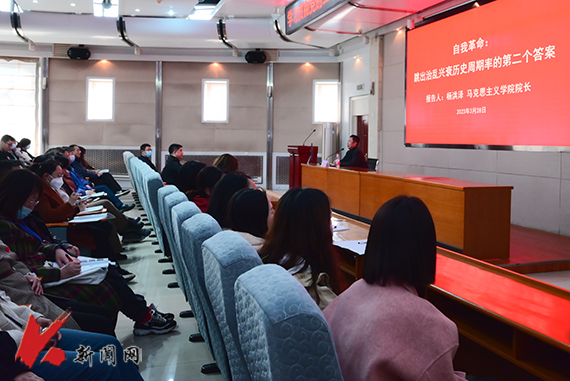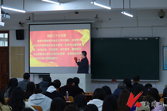 机关党委书记张桦楠在校部220会议室,为机关教职工作题为《立足新时代伟大变革 以中国式现代化全面推进中华民族伟大复兴》的宣讲报告。张桦楠结合对党的二十大精神的学习,从“牢牢把握过去五年工作和新时代十年伟大变革的重大意义”“牢牢把握新时代新征程党的使命任务,大力推进中国式现代化”“更加深刻领悟‘两个确立’的决定性意义,坚定自觉做到‘两个维护’”三个方面,全面阐述了新时代十年伟大变革的里程碑意义;中国式现代化理论是党的二十大的一个重大理论创新,是科学社会主义的最新重大成果;新时代十年发生的伟大变革、取得的伟大成就,是党和人民一道拼出来、干出来、奋斗出来的,最根本的是有以习近平同志为核心的党中央坚强领导,有习近平新时代中国特色社会主义思想科学指引。张桦楠说,学习宣传贯彻党的二十大精神是当前和今后一个时期的首要政治任务,我们要更加深刻领悟“两个确立”的决定性意义,更加自觉做到“两个维护”,要坚定历史自信、增强历史主动,在新的赶考之路上向历史和人民交出新的优异答卷。