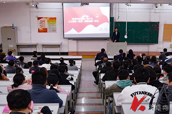 发展规划处处长宋怡林在博学楼A201,为材料与冶金学院、理学院师生代表作题为《坚持科技是第一生产力、人才是第一资源、创新是第一动力》的专题宣讲报告。宋怡林紧密联系学校师生思想和工作实际,以党的二十大报告为政策背景,结合典型案例,分别从三个方面对科技、人才、创新的内涵以及在全面建设社会主义现代化国家、全面推进中华民族伟大复兴中的地位及作用进行了生动的讲解,并对党的二十大报告中教育、科技、人才在全面建设社会主义现代化国家的基础性、战略性支撑的论断进行了系统阐释。宋怡林说,党的二十大报告中习近平总书记关于教育、科技、人才的重要思想,是中国式现代化新实践的行动指南。教师要以知行合一的行动自觉,不断将新思想新观点新论断转化为学校改革发展的生动实践,不断推进学校教育教学、人才培养、科学研究、服务社会和国际化办学高质量发展。