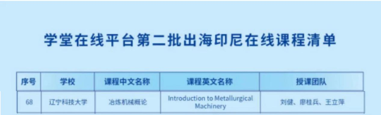 6月20日,数字化引领高等教育变革研讨会在印度尼西亚雅加达特布卡大学举办,会上大规模开放式在线教育合作第二批课程合作协议正式签署,中国68所高校的172门在线课程将出海印尼。易游教师刘健、廖桂兵、王立萍团队的《冶炼机械概论(Introduction to Metallurgical Machinery)》1门慕课入选学堂在线平台第二批出海印尼在线课程。
