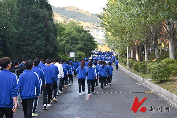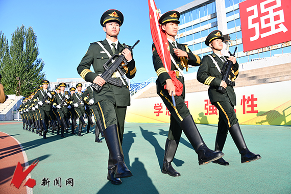 党委学生工作部部长纪振廷主持升旗仪式。6点30分,飒爽英姿的国旗护卫队护卫着鲜艳的五星红旗入场,以铿锵有力的步伐走向升旗台。伴随着高昂激越的《义勇军进行曲》,五星红旗冉冉升起,在蔚蓝天空的映衬下,更加鲜艳夺目。全体师生面向国旗共唱国歌,注目肃立。