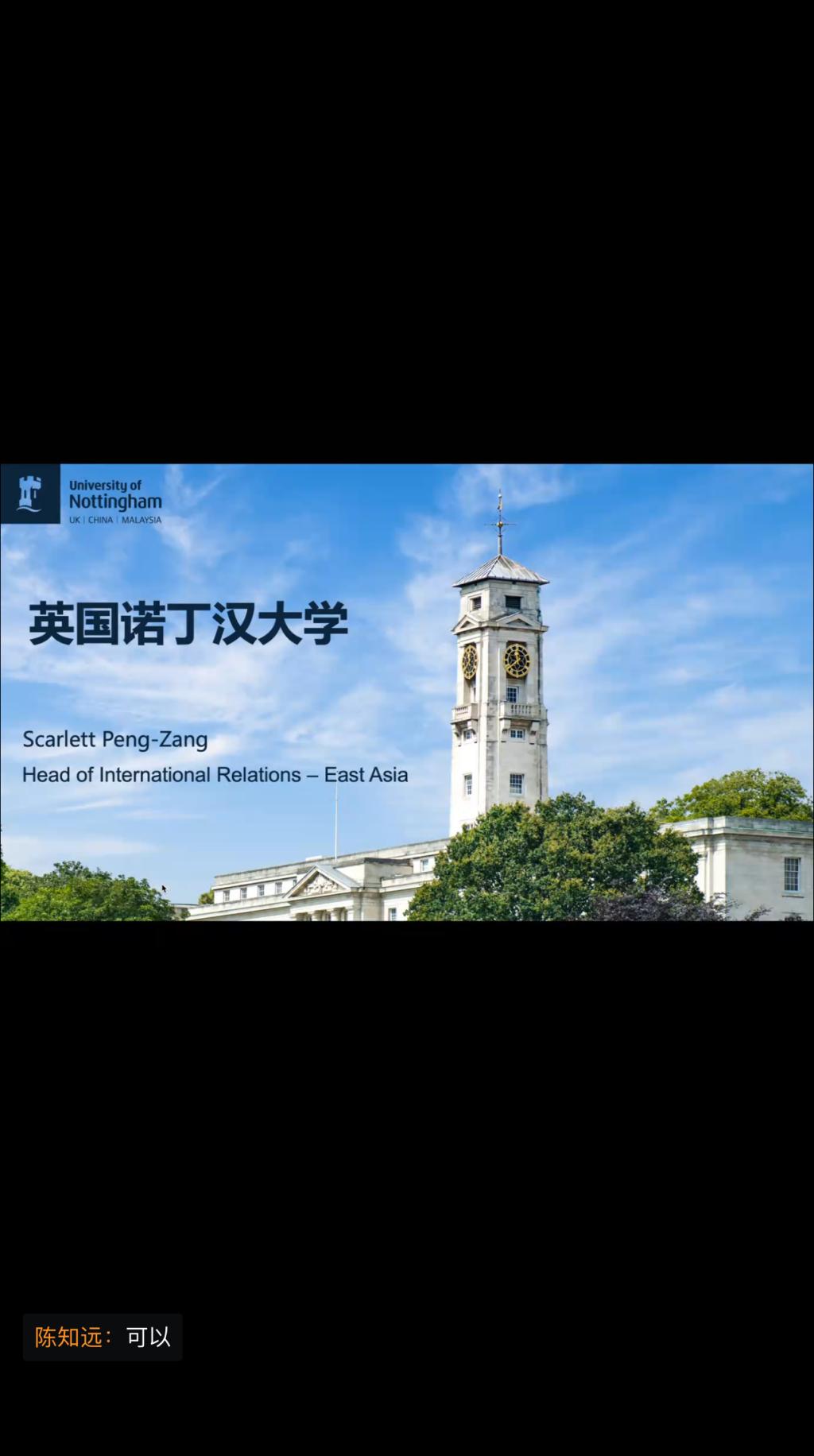 10月13日下午,国际交流合作处开展了英国诺丁汉大学线上留学讲座活动。本次讲座邀请了英国诺丁汉大学亚太地区国际关系主任Scarlett Peng以及诺丁汉大学北方院校合作干事Sean Wang进行宣讲。国际教育学院冶金工程(中外合作办学项目)20余名学生参加了本次活动。