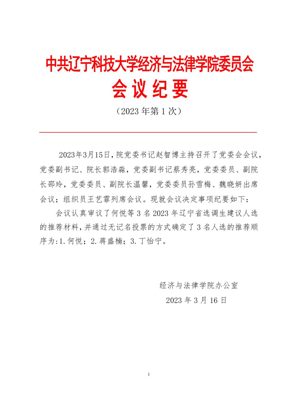 中共易游经济与法律学院委员会会议纪要(2023年第1次)