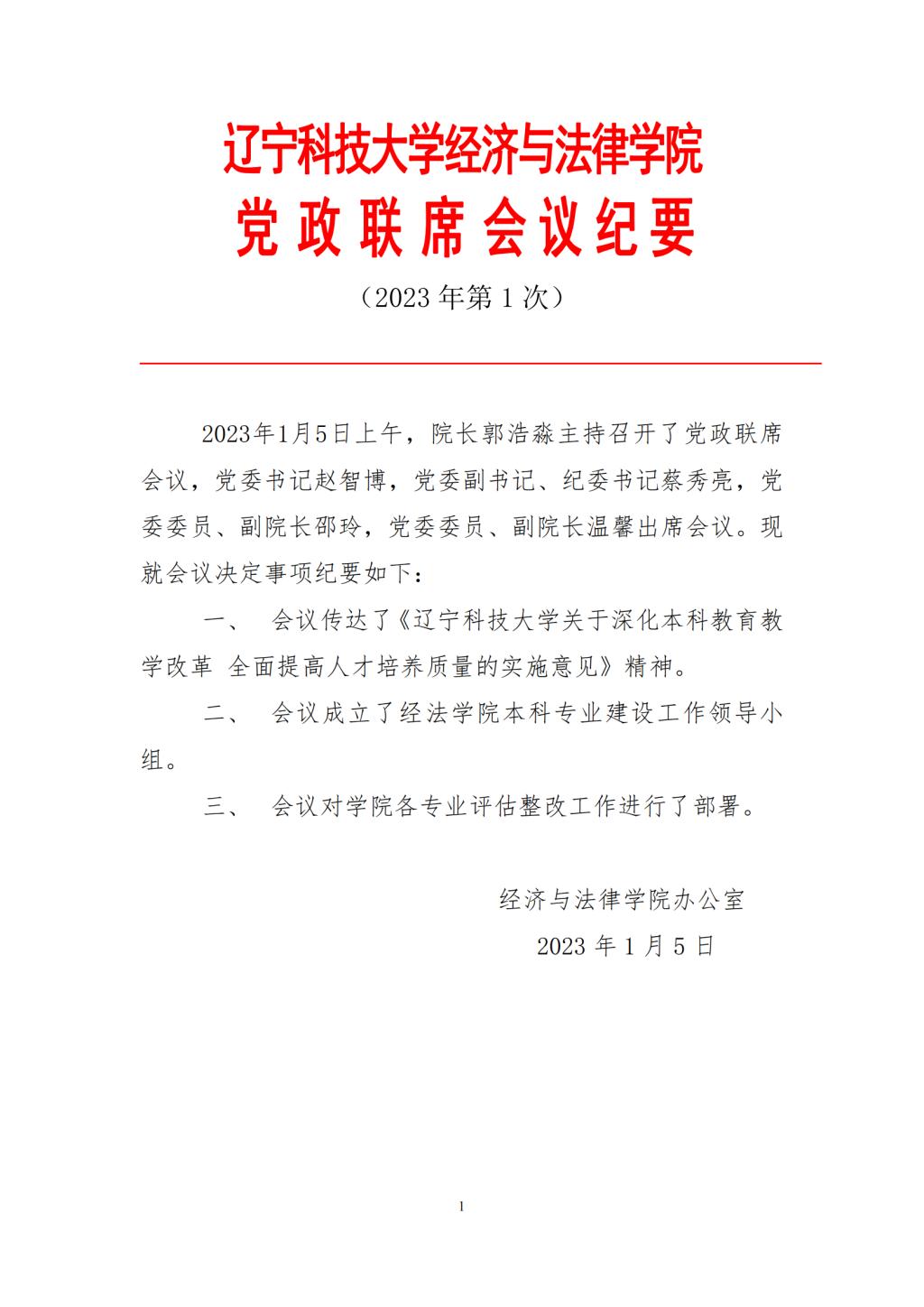 易游经济与法律学院党政联席会会议纪要(2023年第1次)