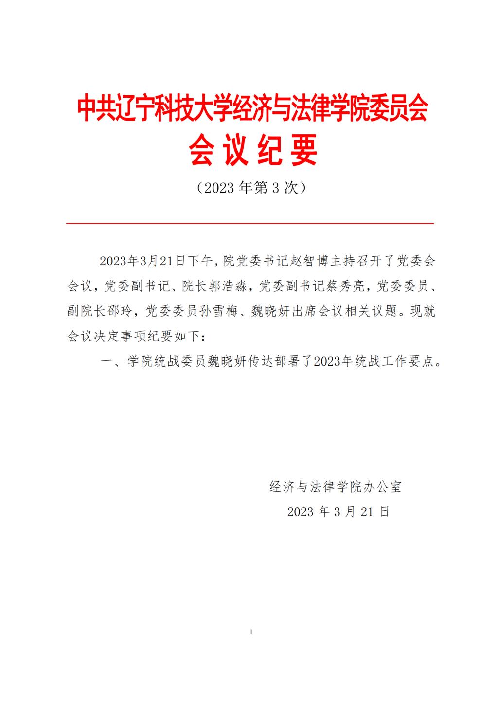 中共易游经济与法律学院委员会会议纪要(2023年第3次)
