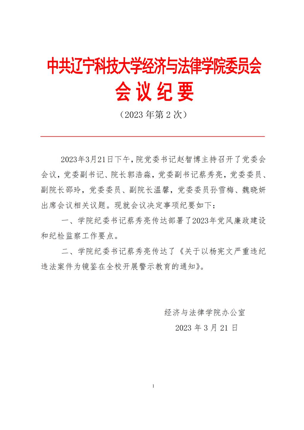 中共易游经济与法律学院委员会会议纪要(2023年第2次)