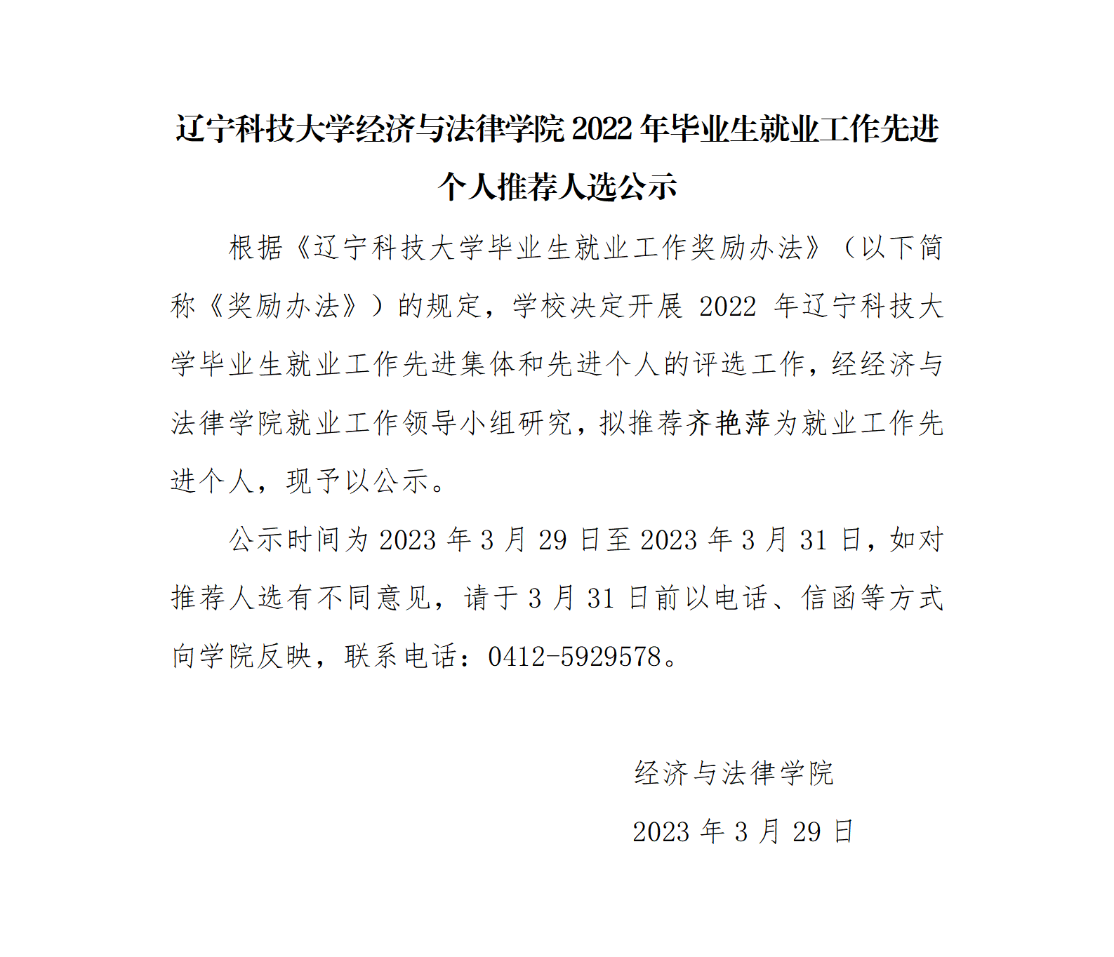 易游经济与法律学院2022年毕业生就业工作先进个人推荐人选公示