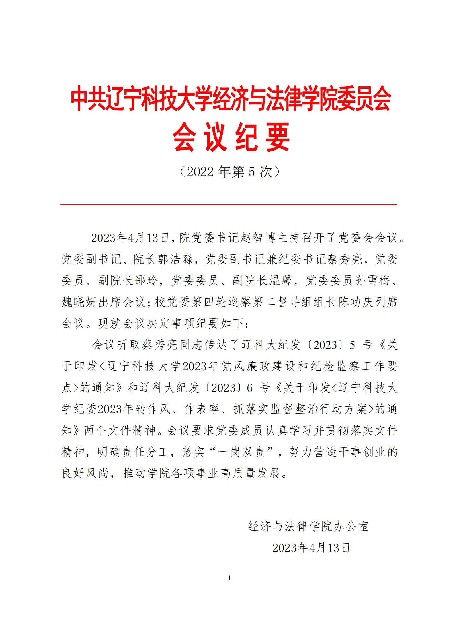 中共易游经济与法律学院委员会会议纪要(2023年第5次)