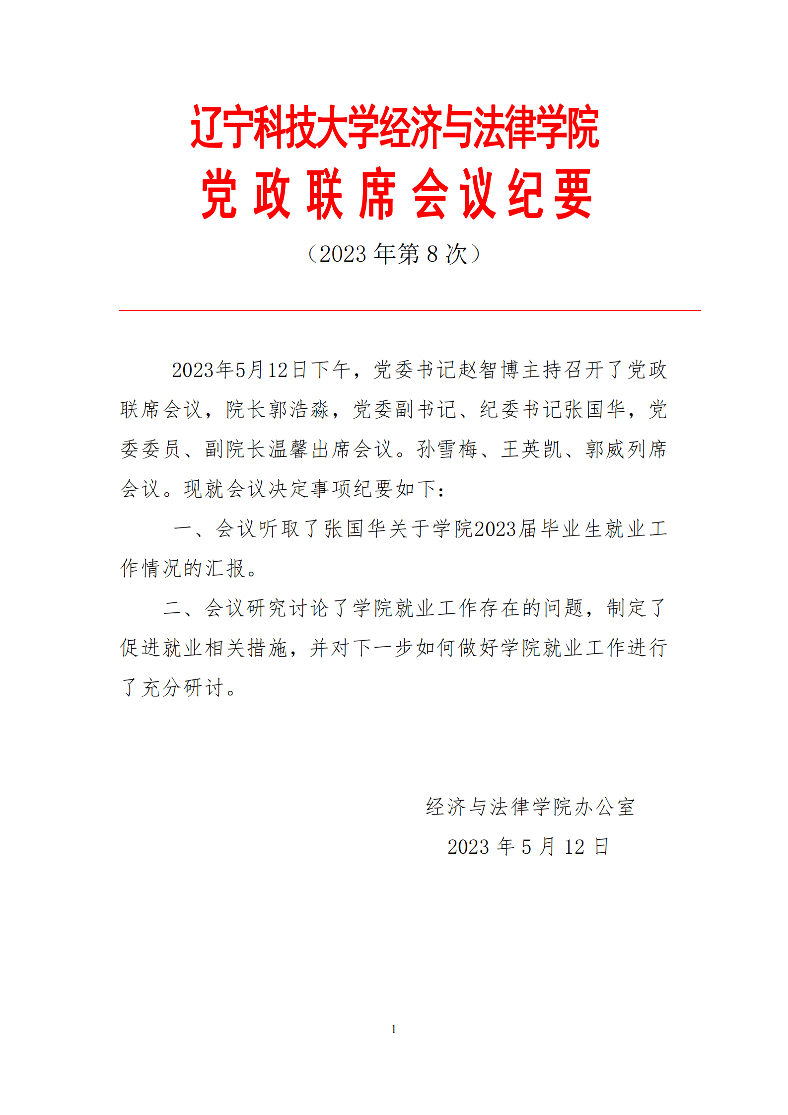易游经济与法律学院党政联席会会议纪要(2023年第8次)