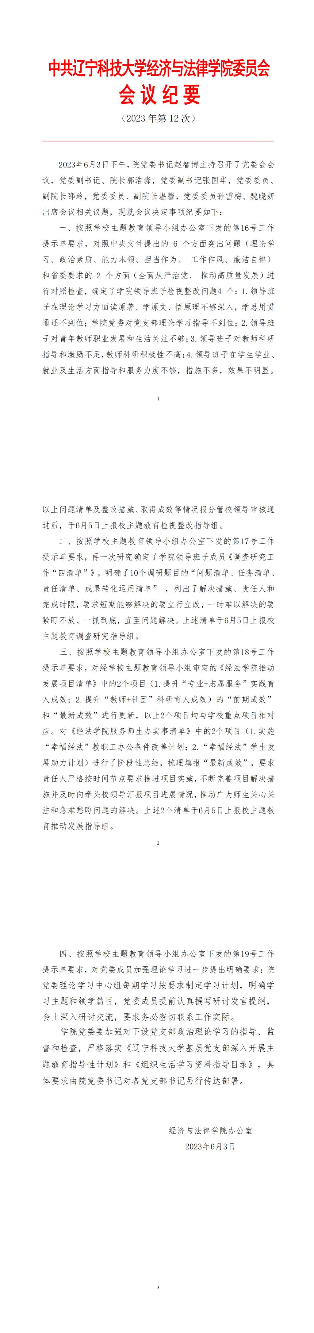 中共易游经济与法律学院委员会会议纪要(2023年第12次)