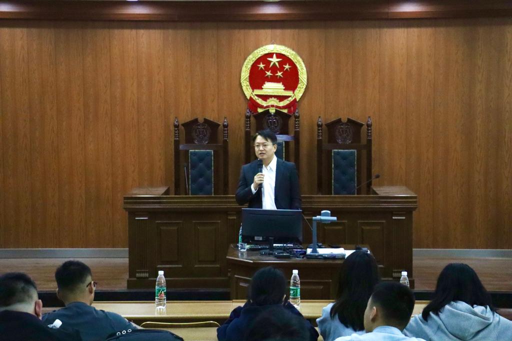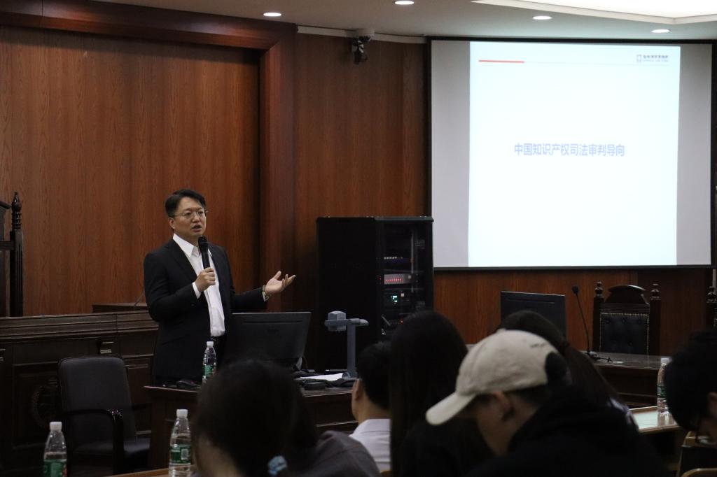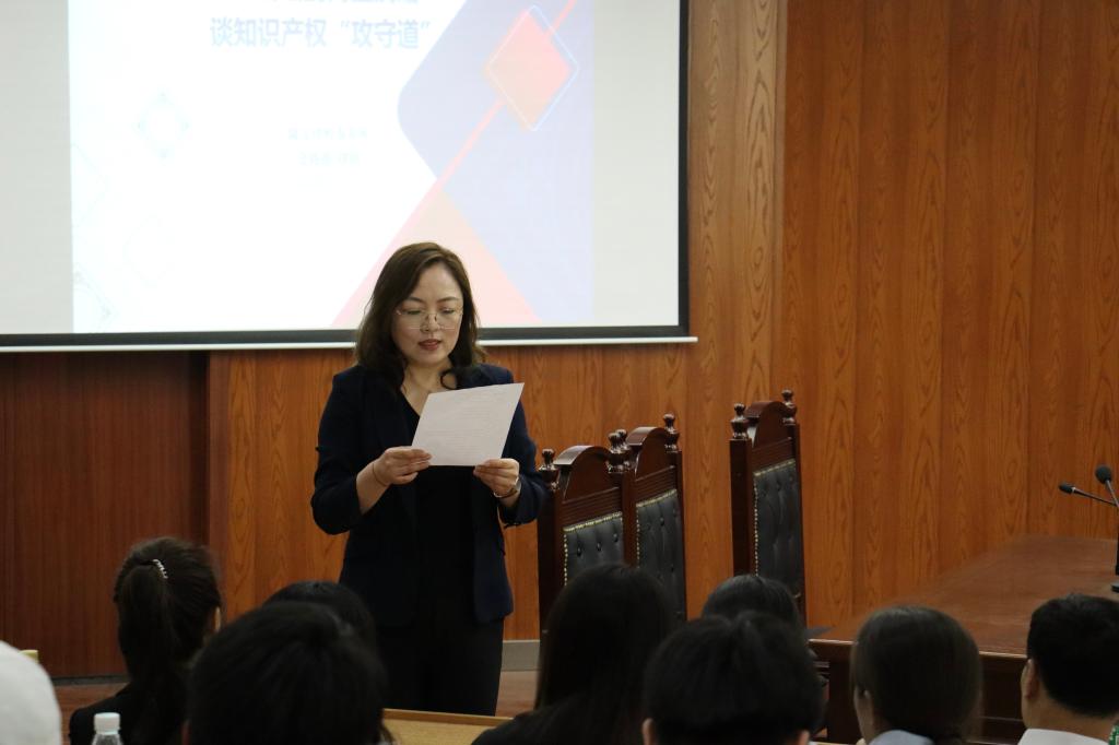 4月26日下午,为增进学生对知识产权知识的了解,引导学生树立知识产权保护意识,营造鼓励知识创新的校园气氛,经法学院于明德楼模拟法庭举办《从诉讼到商业战略谈知识产权“功守道”》专题讲座。本次讲座由经法学院副院长邵玲主持,邀请北京市隆安律师事务所高级合伙人金路循律师主讲,鞍山市市场监管事务中心副主任逄凤义、鞍山市消协秘书长王安宝出席本次讲座,经法学院法学22级和法硕23级学生参加。