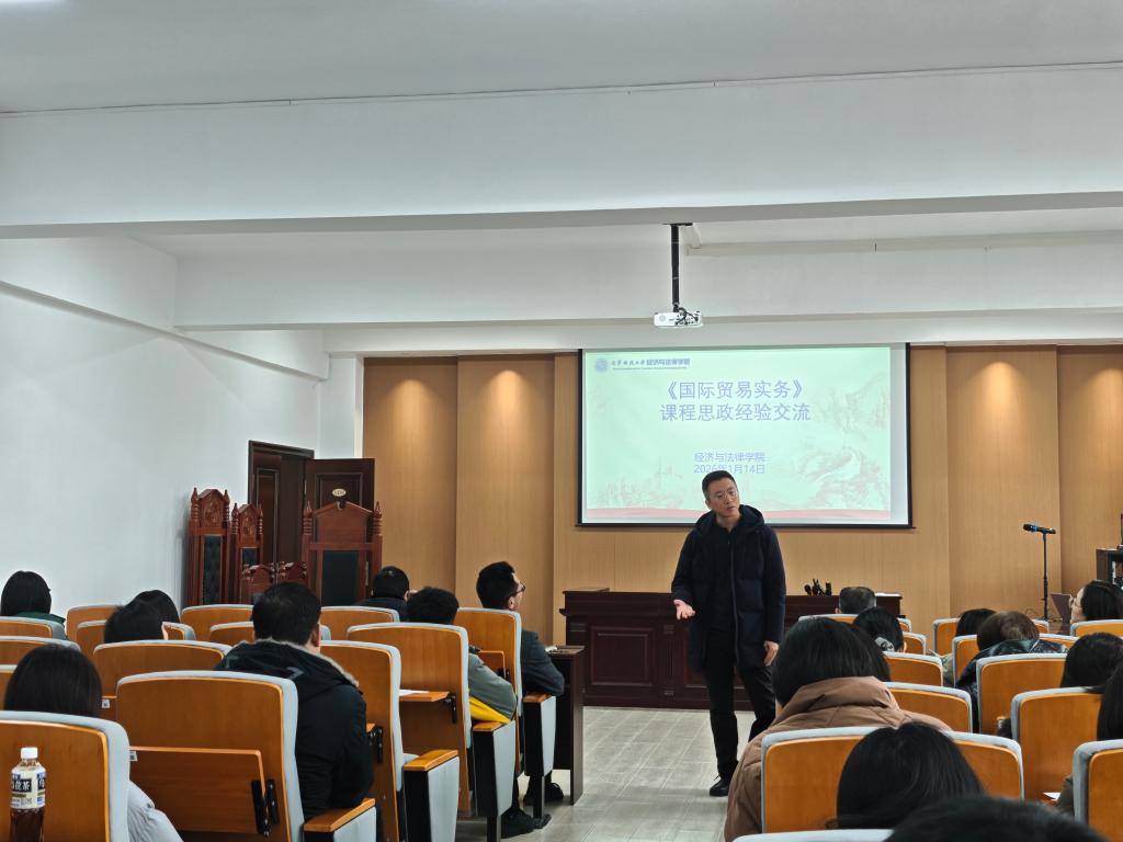 1月14日,经法学院在博识楼A402召开2026年第一次院内教学科研经验交流会。会议由院长郭浩淼主持,学院全体教师参加。会议聚焦课程建设、人才培养与科技创新,四位教师代表作经验分享。