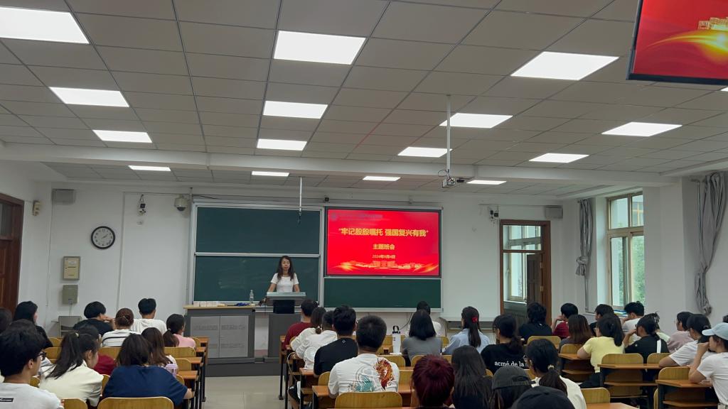 会上,辅导员以“牢记殷殷嘱托 强国复兴有我”为主题,通过PPT、视频等方式,从党的百年壮阔历史讲起,带领学生回顾历史、深耕历史,从弯弯红船到改革开放,再到中国特色社会主义进入新时代,不仅体现了老一辈革命家的深深爱国情怀,更代表着中国共产党带领人民实现了从站起来、富起来到强起来的伟大飞跃。学生们主动分享自己所熟知的历史故事,通过师生讲述互动,让历史鲜活起来,让爱国精神深深扎根于每一位学生心中。最后,辅导员指出,爱国主义内涵丰富,既是中华民族的核心价值观,也是民族精神的重要组成部分。他希望学生能够厚植爱国主义情怀,赓续红色血脉、传承红色精神,为祖国的繁荣富强贡献自己的一份力量。