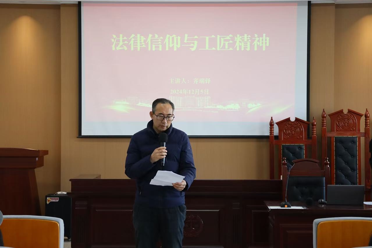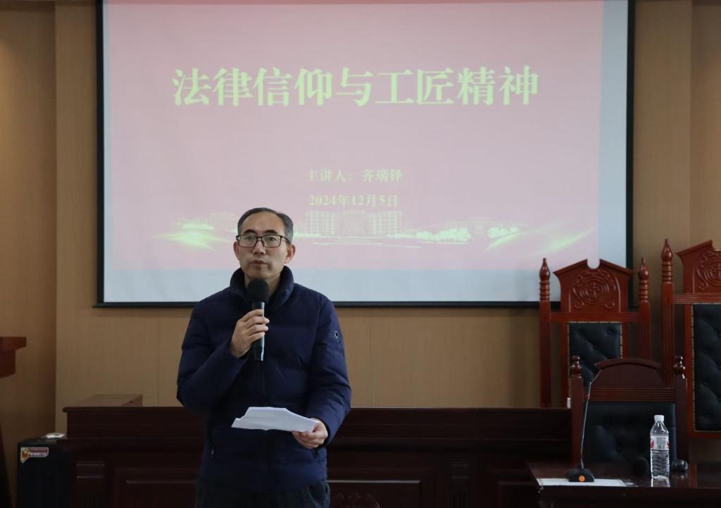 学院党委副书记张国华对齐瑞铎的到来致以诚挚的欢迎和感谢,介绍了本次讲座的主题以及齐瑞铎的学习和工作经历。随后,齐瑞铎以身说法,结合自己在法学研究和实践中的经验,阐述了专业素养的重要性。他分享了多个典型案例,详细讲解了法律演变、走向以及律师现状,强调法律信仰是法律职业生涯的根基,希望同学们在未来职业生涯中能坚定信仰,以法律法规为准绳,公正严明对待法律工作。通过生动的案例和深刻的剖析,齐瑞铎让师生们深刻感受到了法律信仰的力量。现场法学氛围浓厚,参会法学生纷纷表示受益匪浅。