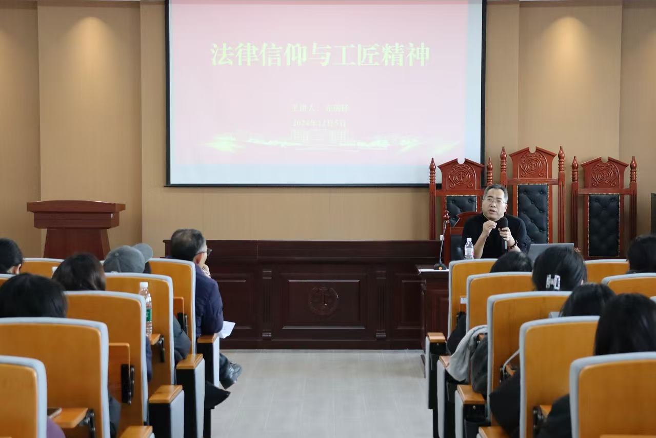 学院党委副书记张国华作总结讲话,他希望同学们能够以此次讲座为契机,进一步加深对法律信仰与工匠精神的理解,努力成为具有高尚品德和卓越才能的时代新人。