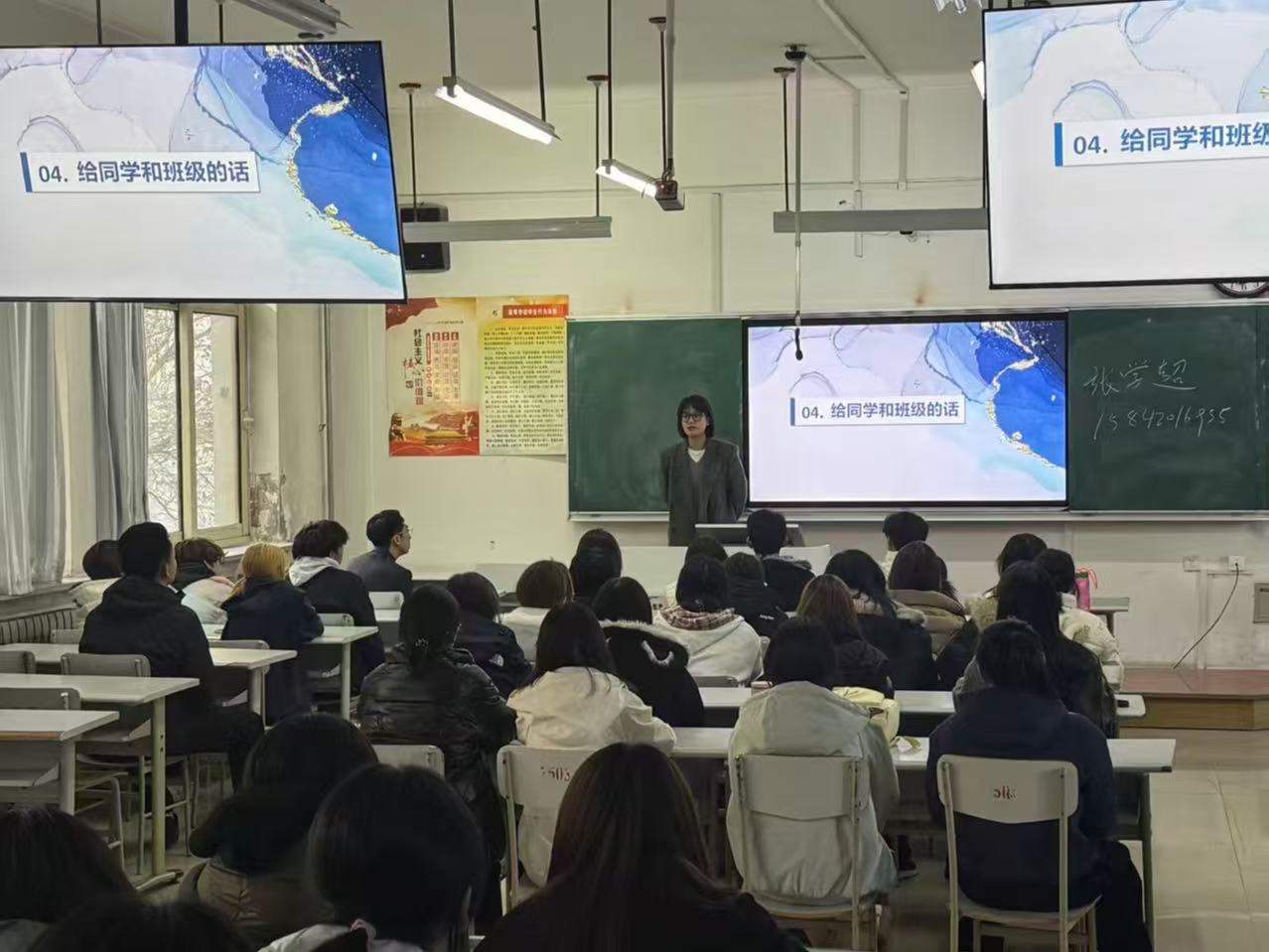 接着,辅导员围绕“为什么学、学什么、怎么学”三个核心问题展开学风建设教育。在互动交流过程中,引导学生树立正确的学习观和成才观。辅导员结合实际案例与学习策略分享,帮助学生明确奋斗目标,提升学习能力。同时强调,大学生应具备社会责任感与时代使命感,提前做好职业规划,坚持诚信守纪,培养健康生活习惯。