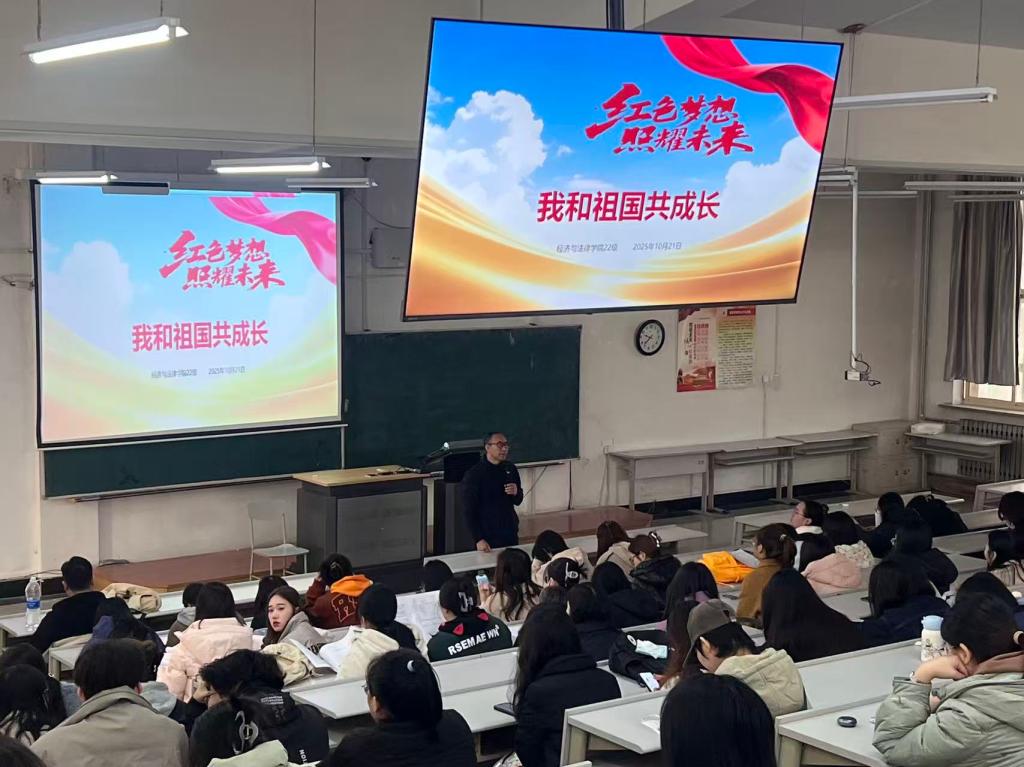 首先,辅导员围绕我与祖国共成长,通过播放习近平总书记在庆祝中华人民共和国成立76周年招待会上的讲话视频,引导学生深刻认识国家的繁荣发展离不开青年一代的接续奋斗。辅导员强调,新时代大学生应树立远大理想和坚定信念,坚持以爱国主义为核心,积极践行社会主义核心价值观,立志把个人理想融入国家发展和民族复兴的伟大事业中。