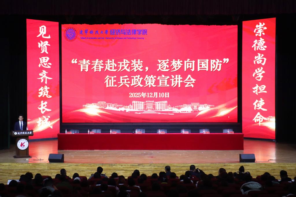 12月10日,经法学院在校礼堂开展“青春赴戎装,逐梦向国防”征兵政策宣讲会。经法学院党委书记赵智博受邀为500余名学生做宣讲。