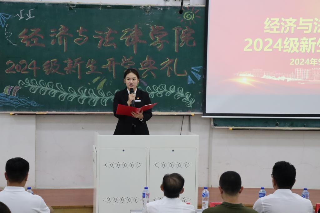 9月4日,经法学院于博学楼C302举办2024级本科新生开学典礼。典礼由学院党委副书记张国华主持,学院领导班子全体成员、辅导员、教师代表、家长代表及2024级261名本科生参加了本次典礼。