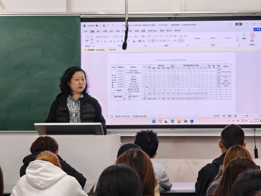 在国际贸易专业介绍会上,主讲人魏晓妍老师从培养目标、就业方向和核心课程切入,通过学院优秀校友的成功案例了解往届校友在专业领域的出色表现,让学生们直观感受专业发展的广阔前景,增强了专业认同感与归属感。随后,魏晓妍老师指出国际贸易专业的跨学科性与应用性,强调国际贸易专业学生应培养全球视野,提升数字贸易环境下的实操能力。