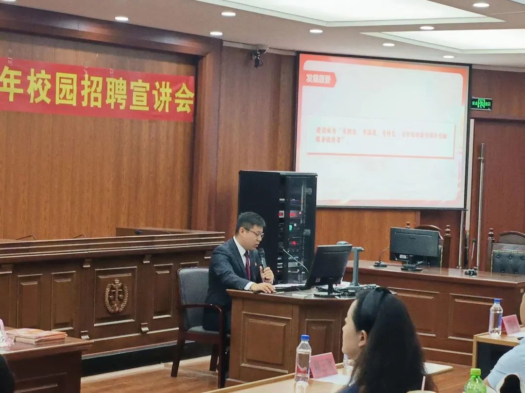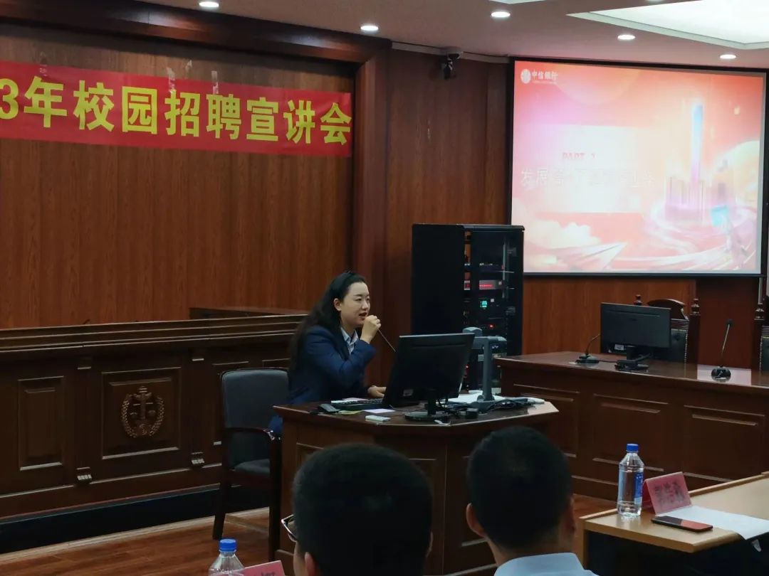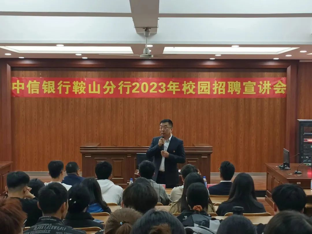 10月18日下午,经法学院邀请中信银行鞍山分行于明德楼A214开展校园招聘宣讲会。本次宣讲会由经法学院党委书记赵智博主持,中信银行鞍山分行一行6人、经法学院党政领导及辅导员5人出席会议,经法学院近100名2024届毕业生参会。
