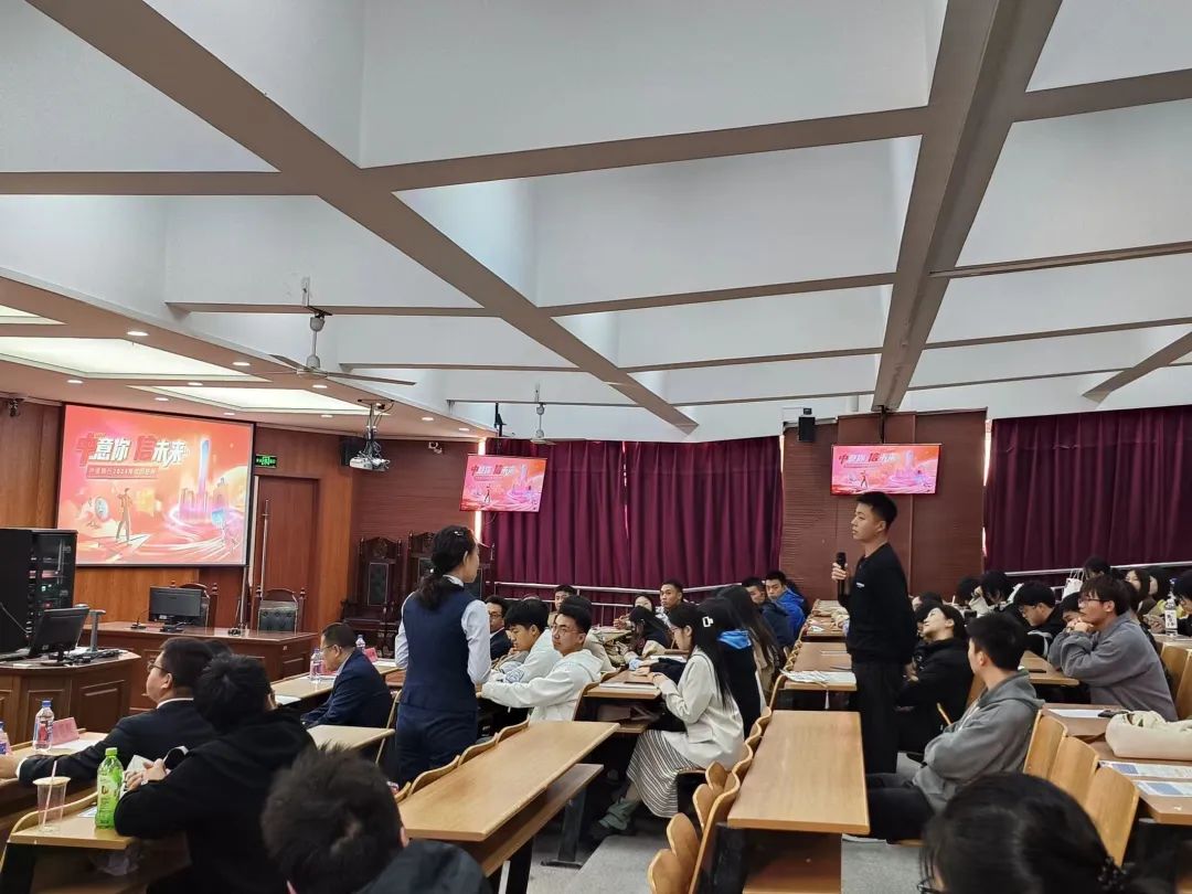 随后,中信银行鞍山分行零售银行部总经理穆云贺(易游(中国)电信学院毕业生)以学长身份向大家传授经验,介绍了中信银行的多项科技成果,并分享了自身求职经历,带领大家一起体会温度职场,展现了中信银行良好的工作氛围;中信银行鞍山分行人力专员王潇萌则为同学们讲解了福利待遇、薪资补贴、招聘对象、招聘范围等,让同学们对中信银行的招聘信息有了更深入的了解。在互动交流环节中,参会同学积极踊跃,提出了有关工作薪资、实习环境等方面的问题,并得到了详细的解答。