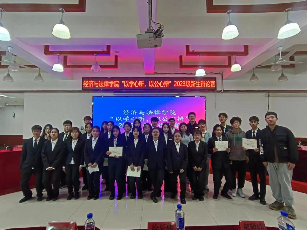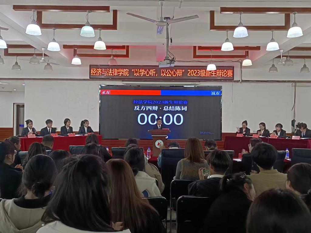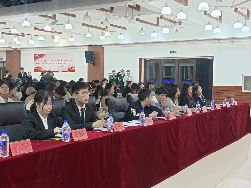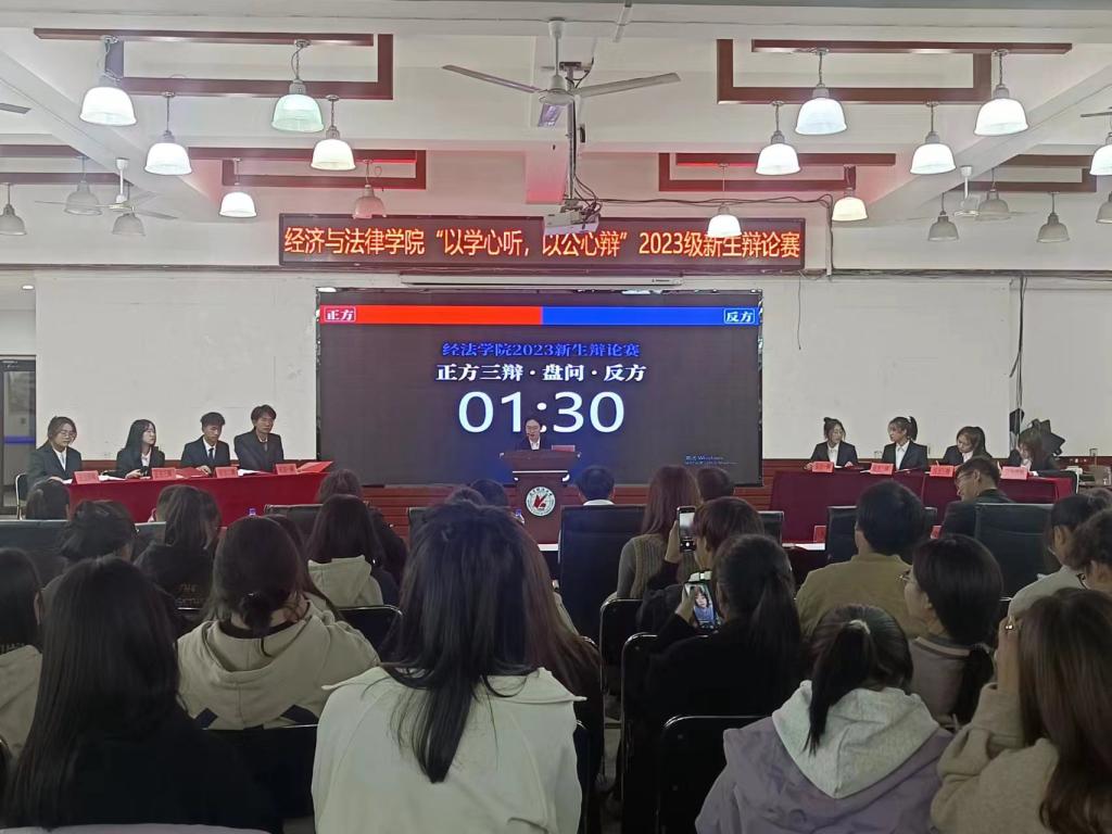 11月2日晚,经法学院于明德楼大学生活动中心举办“以学心听,以公心辩”主题辩论赛。本次辩论赛由金融23-2班白江悦主持,易游辩论队负责人、思辨社社长徐延伟、经法学院辩论队队长韩雨彤、副队长郭聪皓以及经法学院分团委副书记、学生会主席团成员和各部门负责人出席活动并担任评委,2023级全体学生参加本次活动。