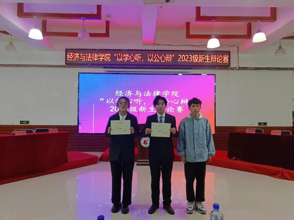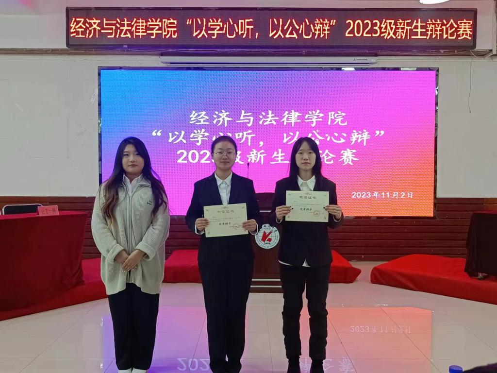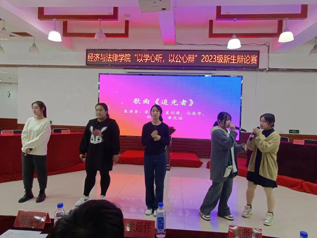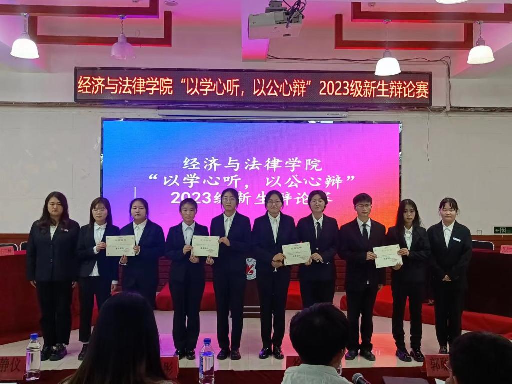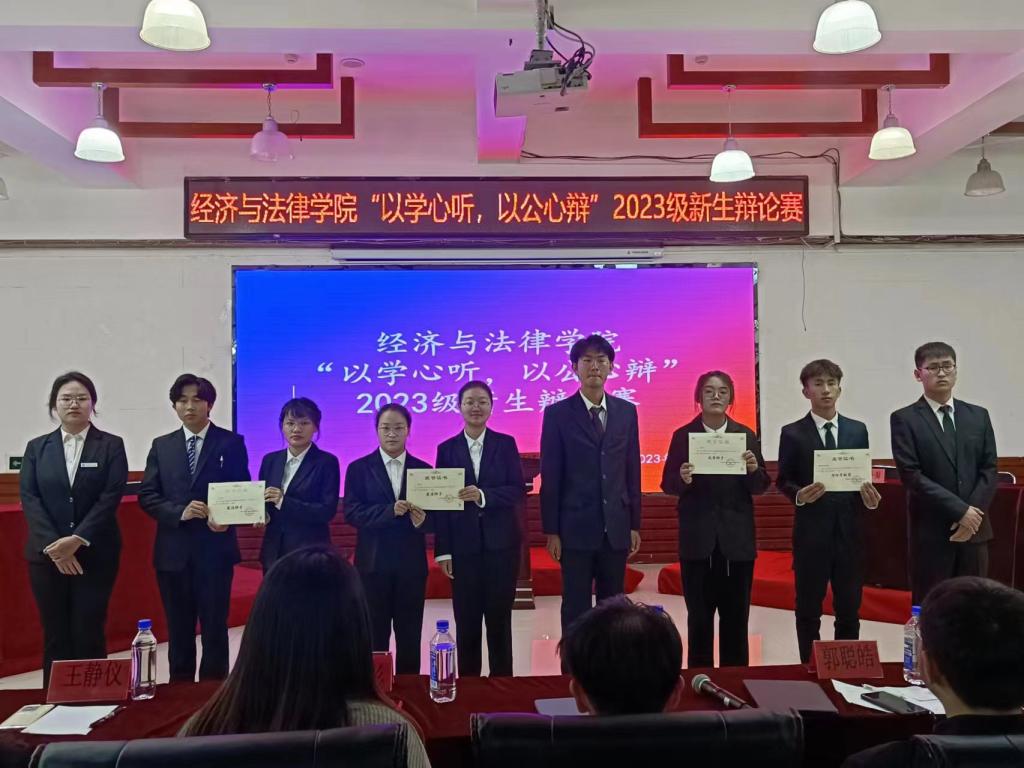 11月2日晚,经法学院于明德楼大学生活动中心举办“以学心听,以公心辩”主题辩论赛。本次辩论赛由金融23-2班白江悦主持,易游辩论队负责人、思辨社社长徐延伟、经法学院辩论队队长韩雨彤、副队长郭聪皓以及经法学院分团委副书记、学生会主席团成员和各部门负责人出席活动并担任评委,2023级全体学生参加本次活动。