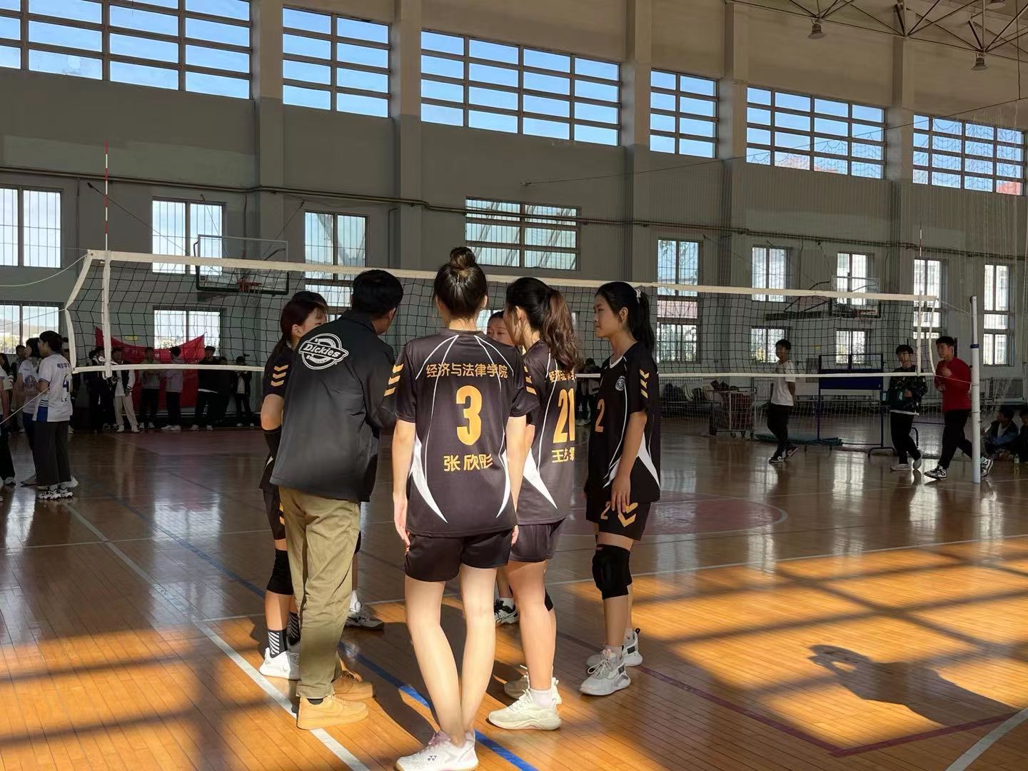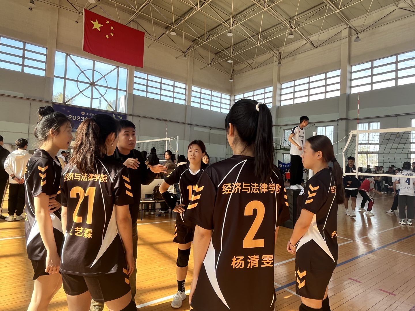 10月27日,在最后一场四强积分赛上,经法学院女排姑娘们在先丢一局的被动局面下没有因为第一轮比赛失利而气馁,她们稳住心态、沉着冷静地应对第二轮比赛。一声哨响,双方队员便开始了龙争虎斗,各施绝技,一个个精彩的扣球、拦网,双方队员都尽力发挥出个人优势,在战术上密切配合,拉开了令人窒息的持续赛,让在场观众欢呼不已。双方势均力敌,难分伯仲,对手方以微弱的优势领先,经法姑娘们临危不乱,配合默契,在老师的指导下力挽狂澜,在团队协作的力量下奋起直追将场面扭转!最终经法学院女排姑娘们连扳两局以总比分2:1赢得了本场比赛。