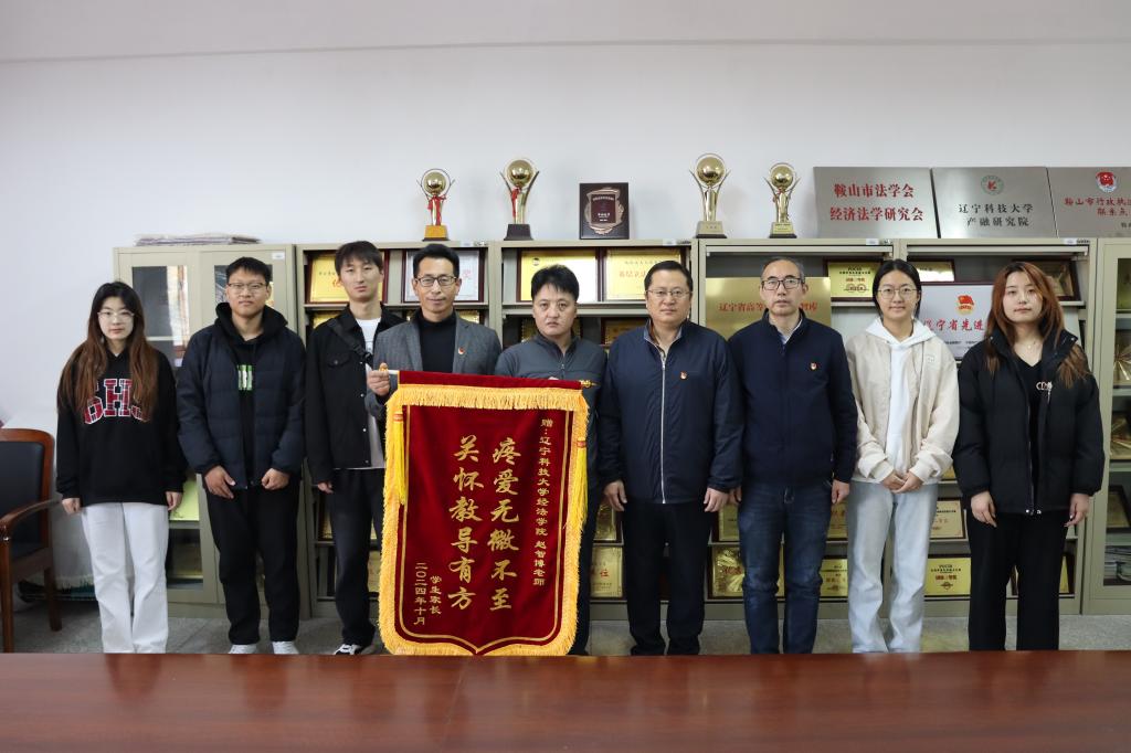 10月31日,易游(中国)经法学院国贸23-2班杨坤林同学的家长风尘仆仆地赶到学校,为经法学院党委书记兼2023级国贸、金融专业辅导员赵智博送来一面写有“疼爱无微不至,关怀教导有方”的锦旗。