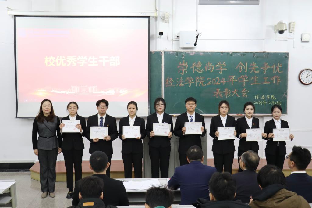 12月23日,经法学院于博学楼A101召开“崇德尚学 创先争优”2024年学生工作表彰大会。会议由学院党委书记赵智博主持,学院领导、各系主任、班主任、辅导员、获奖学生代表及2024级全体学生参加。