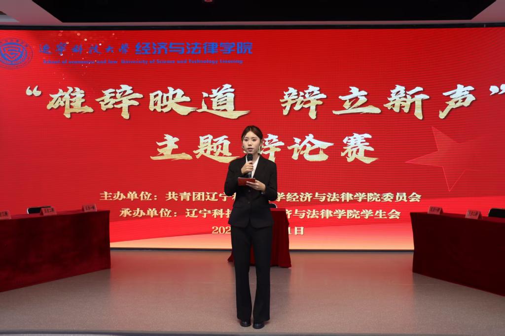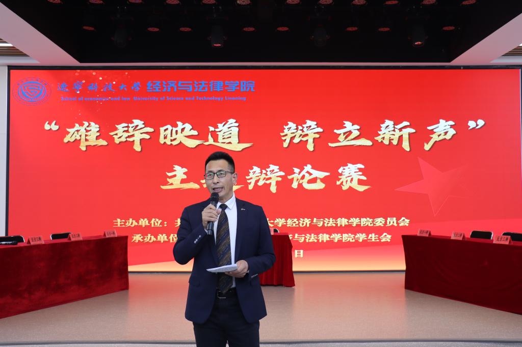 10月31日晚,经法学院在明德楼大学生活动中心成功举办“雄辞映道 辩立新声”主题辩论赛。学院党委书记赵智博、团委书记张鹏飞,以及学院团委、学生会各部门负责人出席活动。易游辩论队队长王斌、经法学院辩论队队长付帅、副队长苗舰担任比赛评委。本次活动由法学25-2班姜懿轩同学主持,2025级学生代表到场观赛。