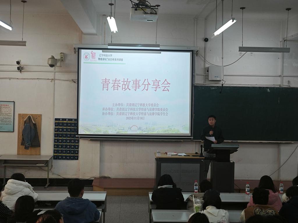 11月18日,由校团委主办、经法学院承办的“博雅讲坛”2025年系列讲座之青春故事分享会在博学楼C202顺利举行。学院团委书记张鹏飞、团学骨干与2024级全体学生共计260余人共同聆听优秀学子的成长经历,在交流互鉴中进一步明晰学业方向、科学规划大学生活。