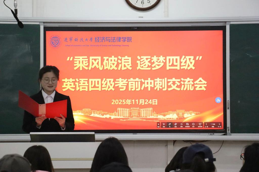 为帮助同学们顺利通过大学英语四级考试,提升英语学习能力,经法学院于11月24日在博学楼C501举办了英语四级经验交流会,共计59名大一新生参加了本次交流会。
