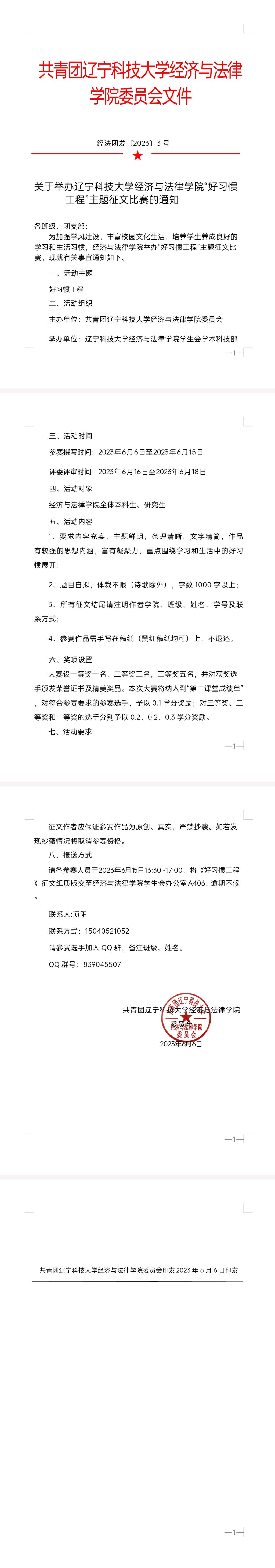 关于举办易游经济与法律学院“好习惯工程”主题征文比赛的通知