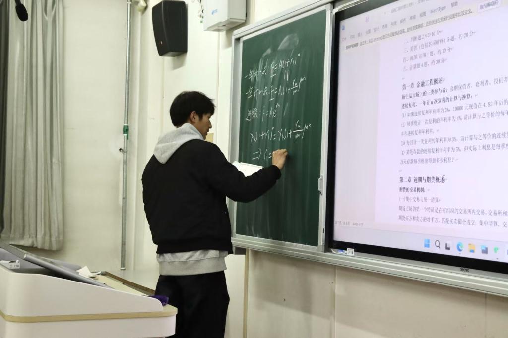 3月5日和7日晚,金融科技22-2班的刘浩辰同学担任《计量经济学》主讲人。刘浩辰首先系统梳理了知识体系,构建了知识框架,随后引入相关习题进行实战演练。在讲题过程中,刘浩辰与同学们积极互动,提问环节大家踊跃发言。课后,刘浩辰还为仍存疑惑的同学提供单独辅导,直至他们彻底掌握。照片定格下的,是同学们求知若渴的眼神,以及主讲人专注、投入的身影。