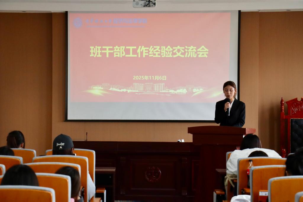随后,法学23班班长李鑫颖以实际工作案例为切入,强调班干部团队内部应分工明确、沟通顺畅。她指出,在信息传达、意见收集过程中,要做到及时、准确、得体,以确保班级事务推进高效有序。她强调,班干部身份意味着“服务”而非“管理”,要用真心与行动拉近与同学的距离。