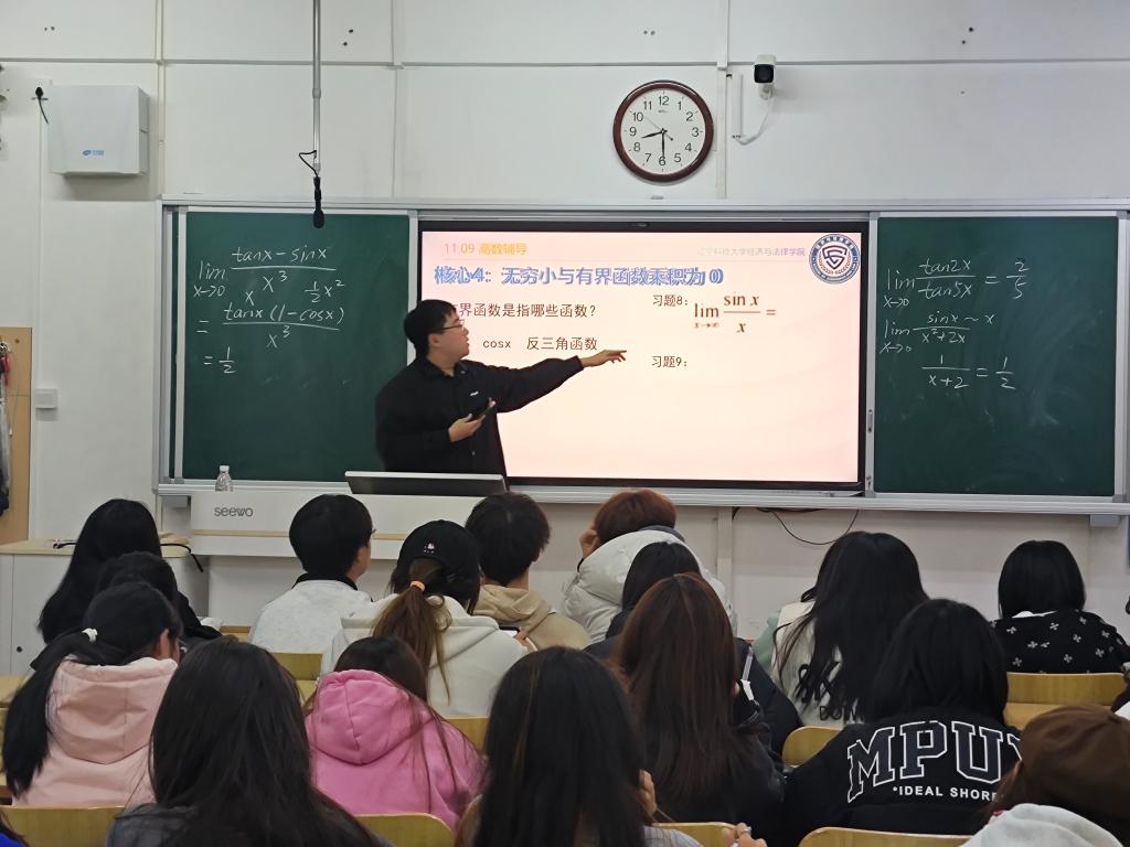 随后,高数教员金融 232 李诗哲用通俗易懂的高数教学方法,将复杂知识点拆解转化。本次分享中,他以《高数基础图像与极限》为专题,通过PPT直观演示,围绕反三角函数图像、两个重要极限、等价无穷小替换等核心内容,细致拆解极限计算、函数定义域求解等高频考点,并用典型例题手把手演示洛必达法则的应用技巧,让原本晦涩的高数知识变得清晰易懂。