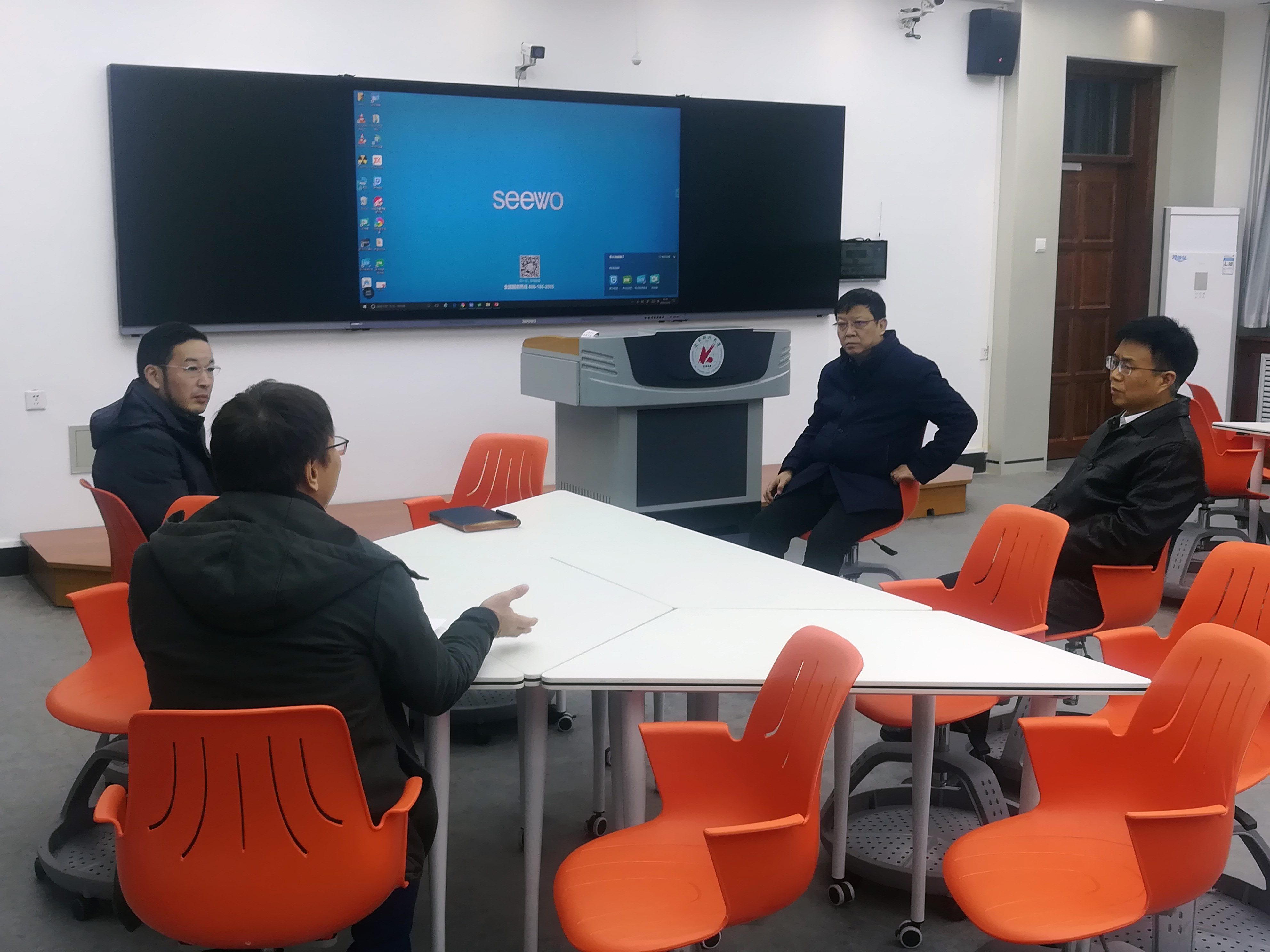 12月11日,易游党委书记李平、校长张志强在教务处负责同志陪同下来到博学楼新建成的智慧教室,听取了教务处同志对智慧教室的建设情况。