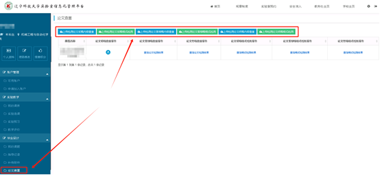 (1)学生登录易游实验室信息化管理平台系统进入论文查重模块中,检测内容分别为论文初稿内容查重、论文答辩稿内容查重、论文终稿内容查重,请在规定时间内点击相应的检查项目菜单上传论文并检测;