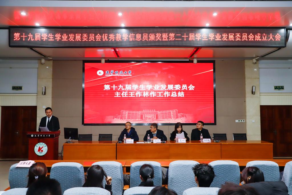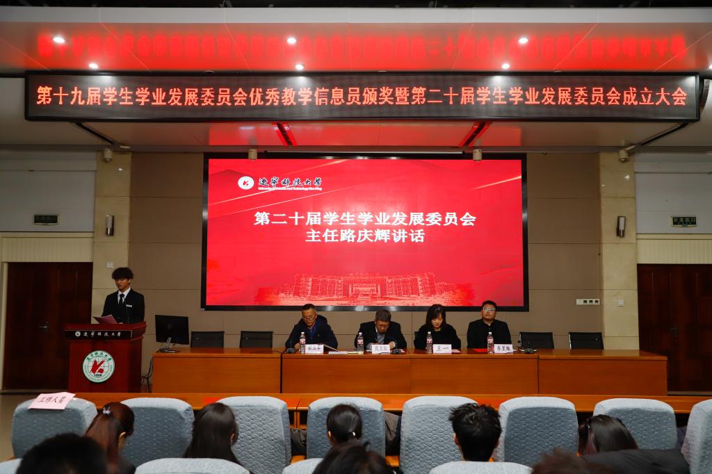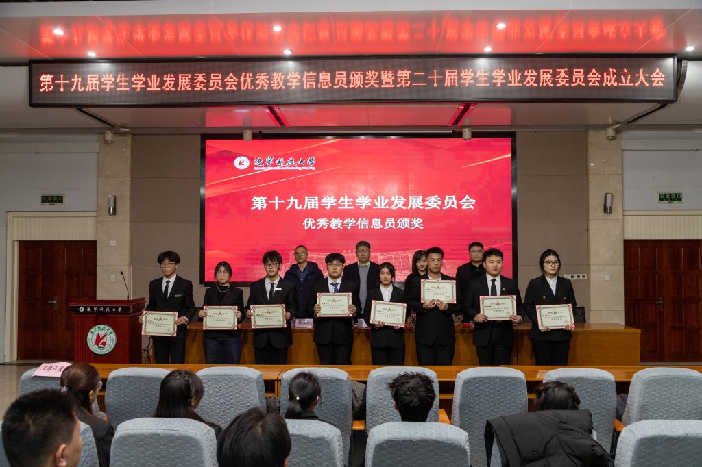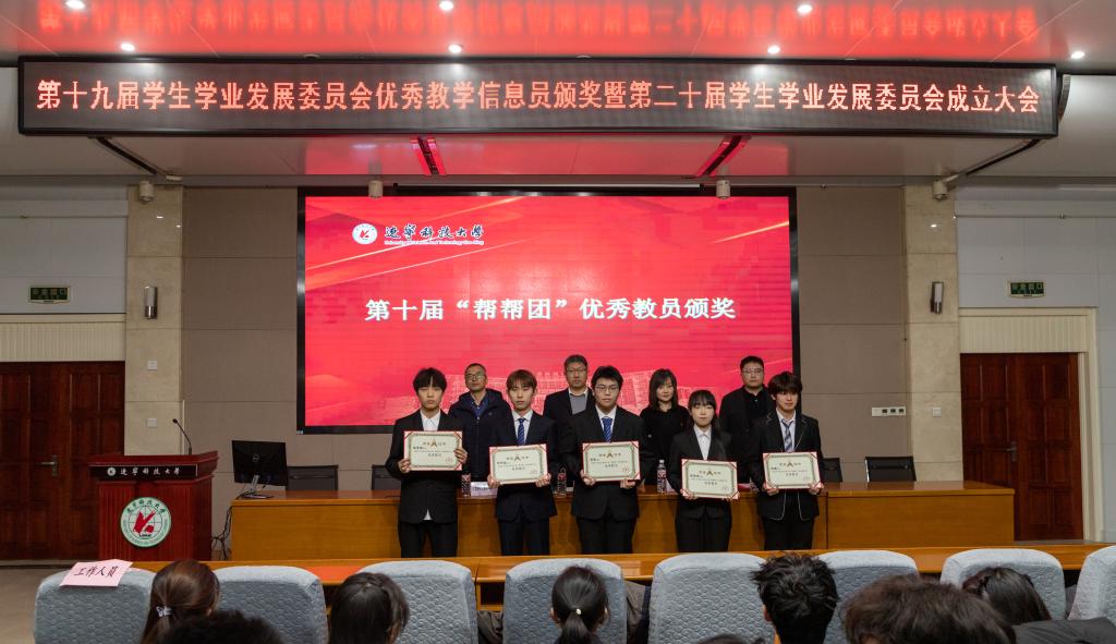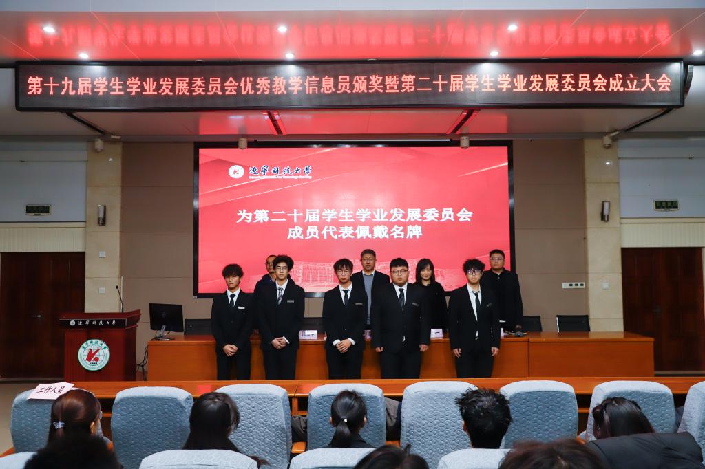 会上表彰了第十九届学生学业发展委员会优秀教学信息员、先进个人和第十届“帮帮团”优秀教员,宣读了第十一届“帮帮团”学霸教员和第二十届学生学业发展委员会聘任名单,与会领导为受表彰同学颁发荣誉证书,并为新一届委员会成员代表佩戴胸牌。