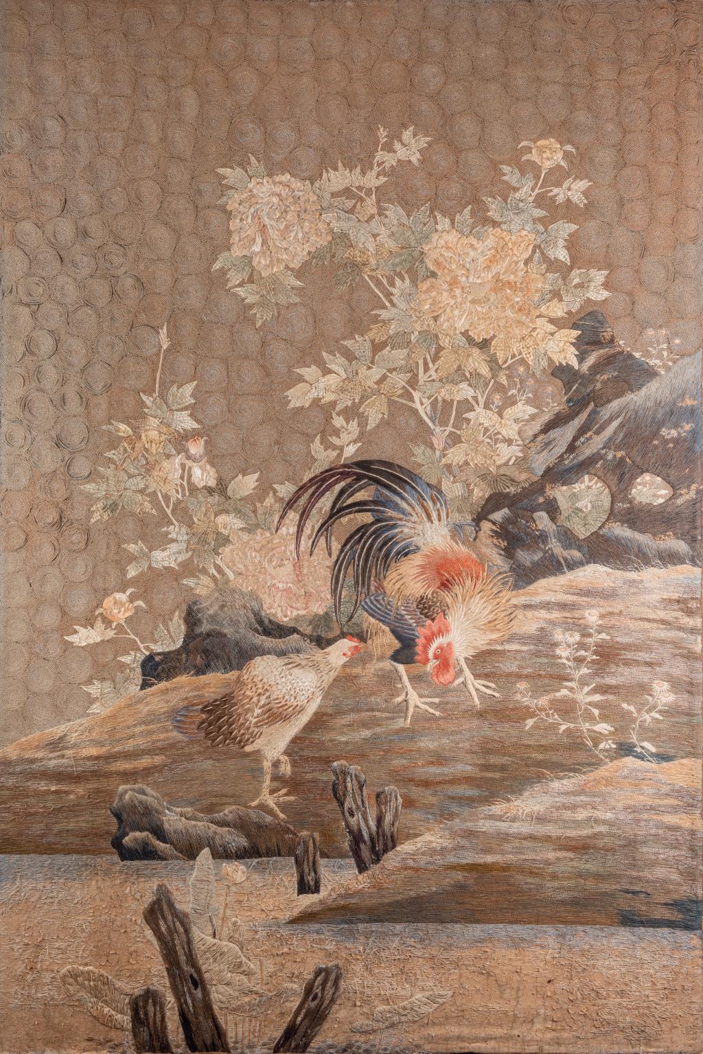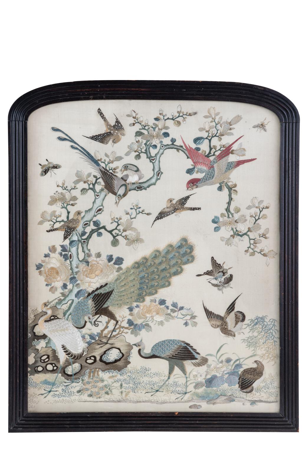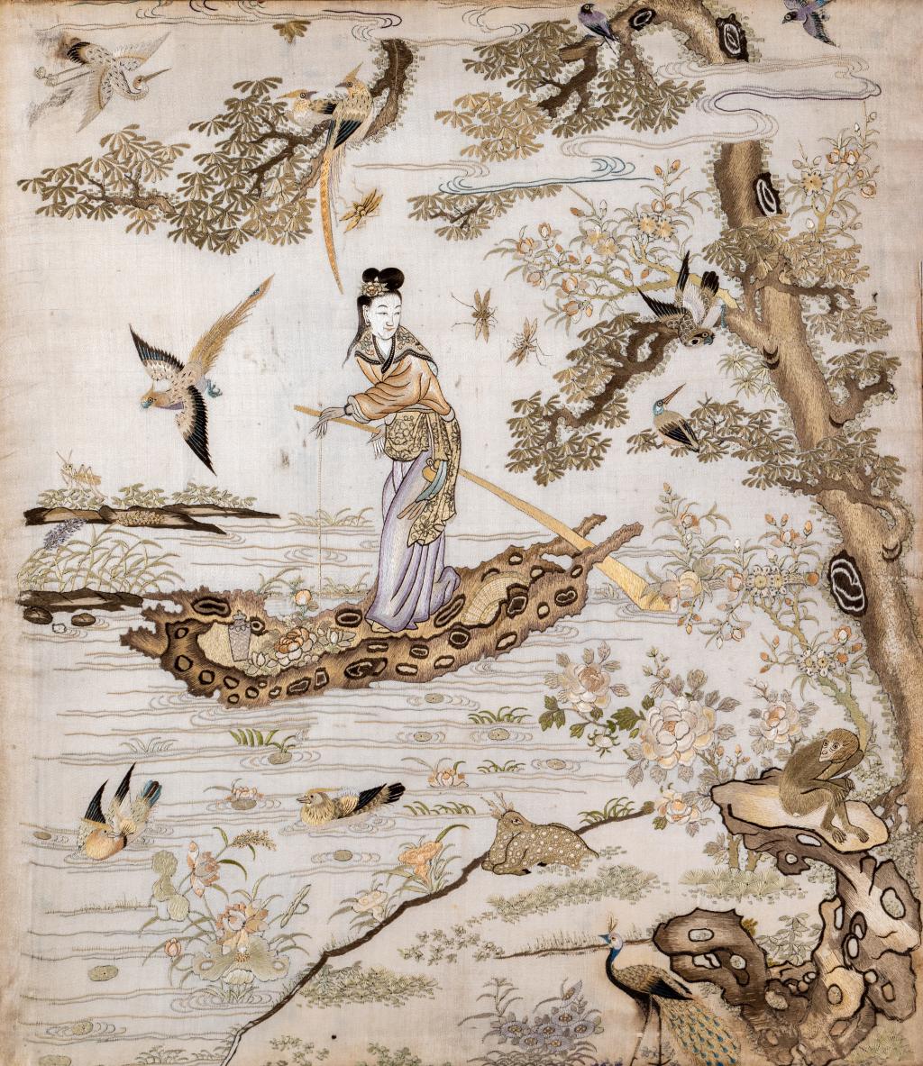 清 宫廷粤绣花鸟