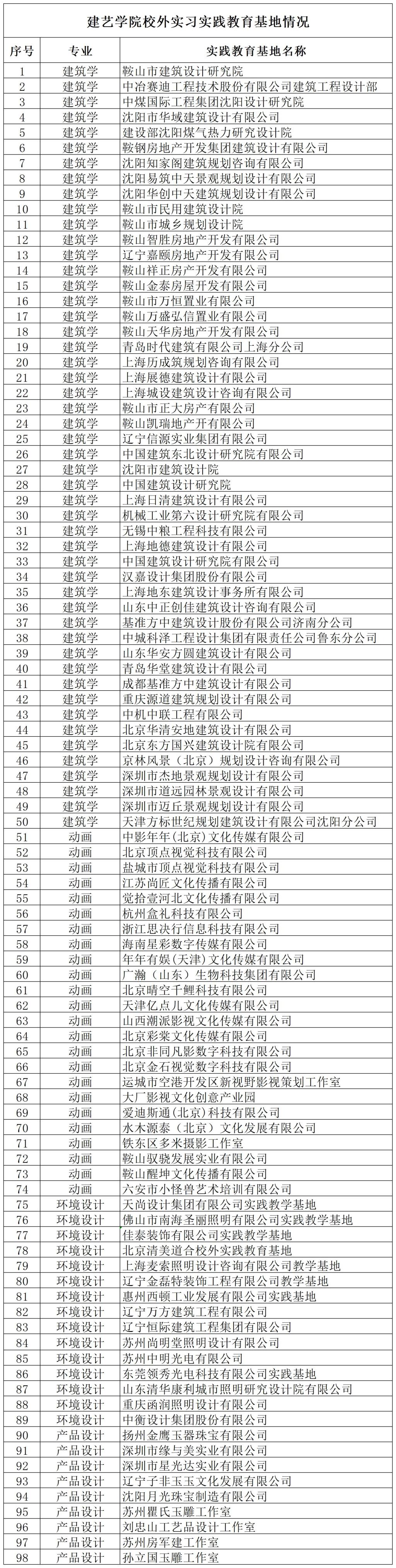 建艺学院校外实习实践教育基地情况