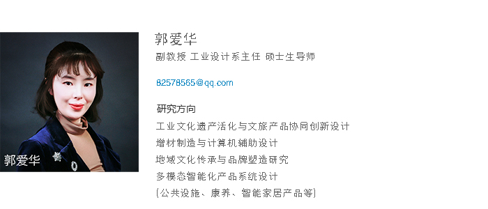 郭爱华,韩国庆一大学设计学博士,北京理工大学设计艺术学硕士(本硕博均工业设计专业)。曾获易游校级教学质量优秀奖两次;主持校级教改项目及教育科学研究课题共计十余项、省级教改项目主要完成人、主持及参与省校级教改成果奖一二三等奖共计十余项;曾获全国高校教师(本科)微课教学大赛辽宁省一等奖、全国多媒体课件大赛二等奖三等奖各一项、辽宁省教育软件大赛三等奖两项、校多媒体课件教学大赛一等奖、校优秀教案大赛一等奖二等奖;主编出版高等院校工业设计类“十二五”规划教材一部;主持中国科协青年智库成果、辽宁省社科联资助项目、辽宁省教育厅项目、鞍山市社科联项目等十余项;参与辽宁省自然科学基金项目、省精品资源共享课建设、省教育厅项目、市级科学计划项目等十余项;发表检索、核心论文多篇、教学研究论文多篇;授权实用新型专利和外观设计专利十余项;指导国家级省级大创项目若干、获校级大创年会一等奖两次二等奖一次;指导学生在A类学科竞赛中获一二三等奖若干、获辽宁省大学生工业设计大赛优秀指导教师。