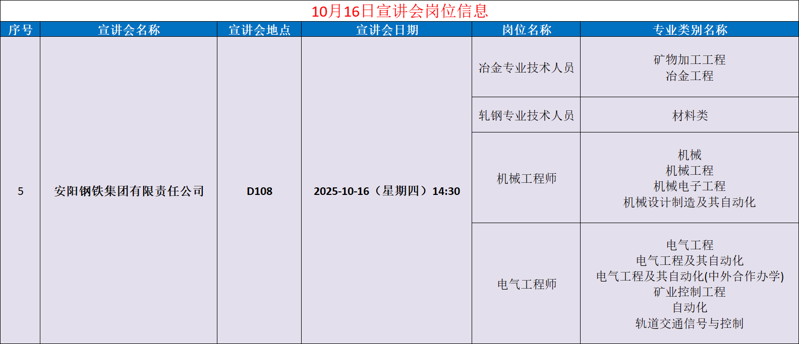 矿业工程学院十月宣讲会岗位信息