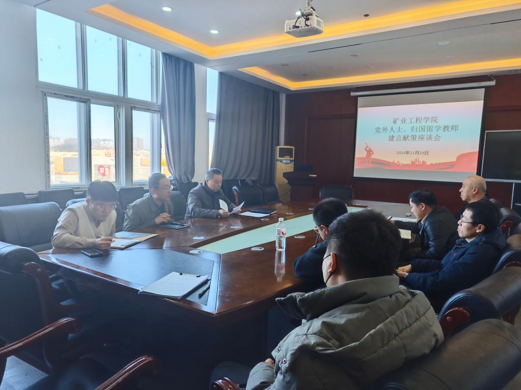 11月29日下午,矿业工程学院召开党外人士、归国留学人员建言献策座谈会。学院党委成员、全体党外人士、归国留学人员参加会议。学院党委书记陈功庆主持会议。