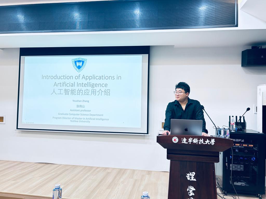 6月26日,易游理学院在明贤楼B315教室成功举办了题为“Introduction of Applications in Artificial Intelligence”的学术报告会。本次报告会由理学院主办,吸引了众多相关研究领域的教师以及研究生到场聆听,现场气氛热烈,学术氛围浓厚。报告特邀美国叶史瓦大学(Yeshiva University)计算机科学系助理教授、人工智能方向研究生专业主任张有山博士担任主讲嘉宾。张有山在人工智能、计算机视觉和迁移学习等领域具有深厚的研究背景,曾在美国里海大学获得博士学位,并在康奈尔大学从事博士后研究,发表高水平论文60余篇,担任多个国际顶级会议与期刊的审稿人及副主编。