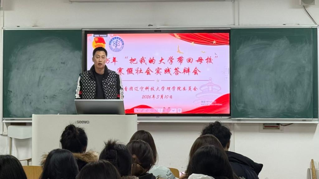 3月10日,理学院2026年“把我的大学带回母校”寒假社会实践答辩会在明贤楼B402教室召开。学院团委书记张桐,第二十届分团委学生会全体成员及各寒假实践团队成员参加此次答辩会。