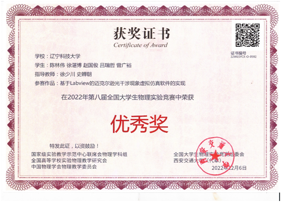 通过校内预赛,我校共选派3支队伍,参加于2022 年11 月26-27日举行的决赛,受疫情的影响,决赛以视频会议形式举行,经过角逐,我校学生获奖二等奖1项、三等奖1项、优秀奖1项。其中,由孙家军等教师指导学生谢韩等荣获二等奖,由冷雪松等教师指导学生郭文祥等荣获三等奖,由史韡朝等教师指导学生陈林伟等荣获优秀奖。